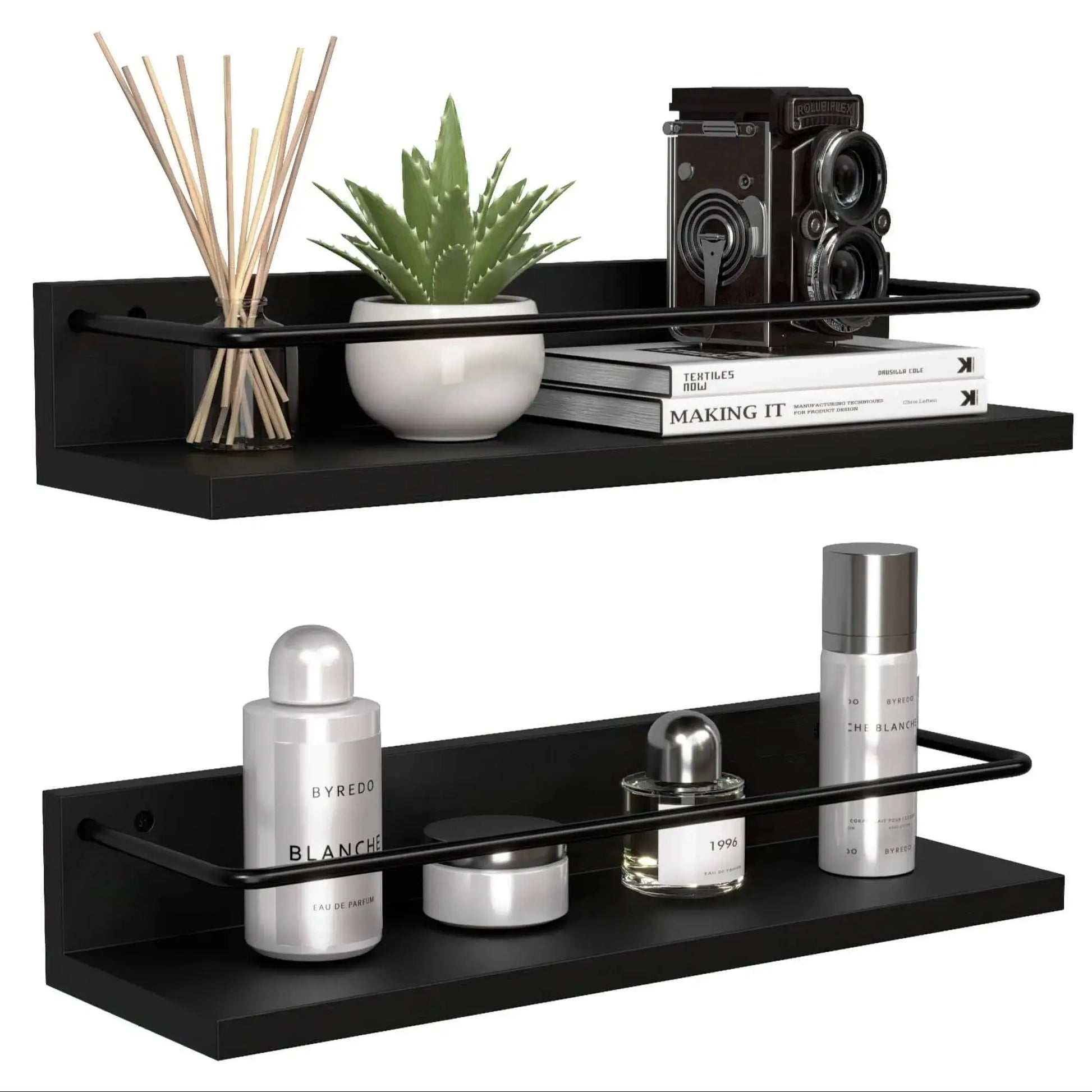 Floating Shelves with Metal Guardrail