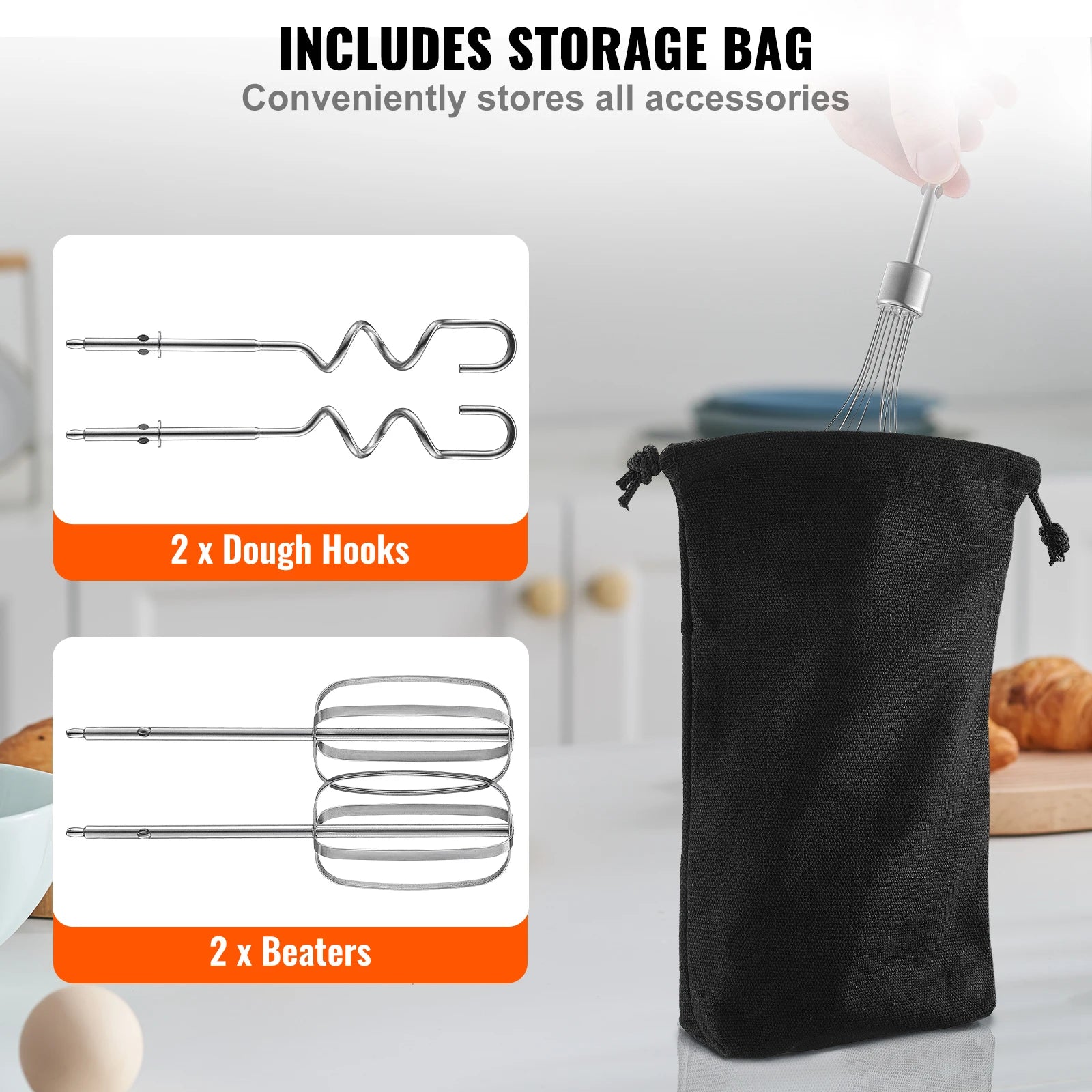 VEVOR Cordless Electric Hand Mixer Continuously Variable Electric Handheld Mixer Baking for Whipp Mixing Egg Cookie Cake Cream